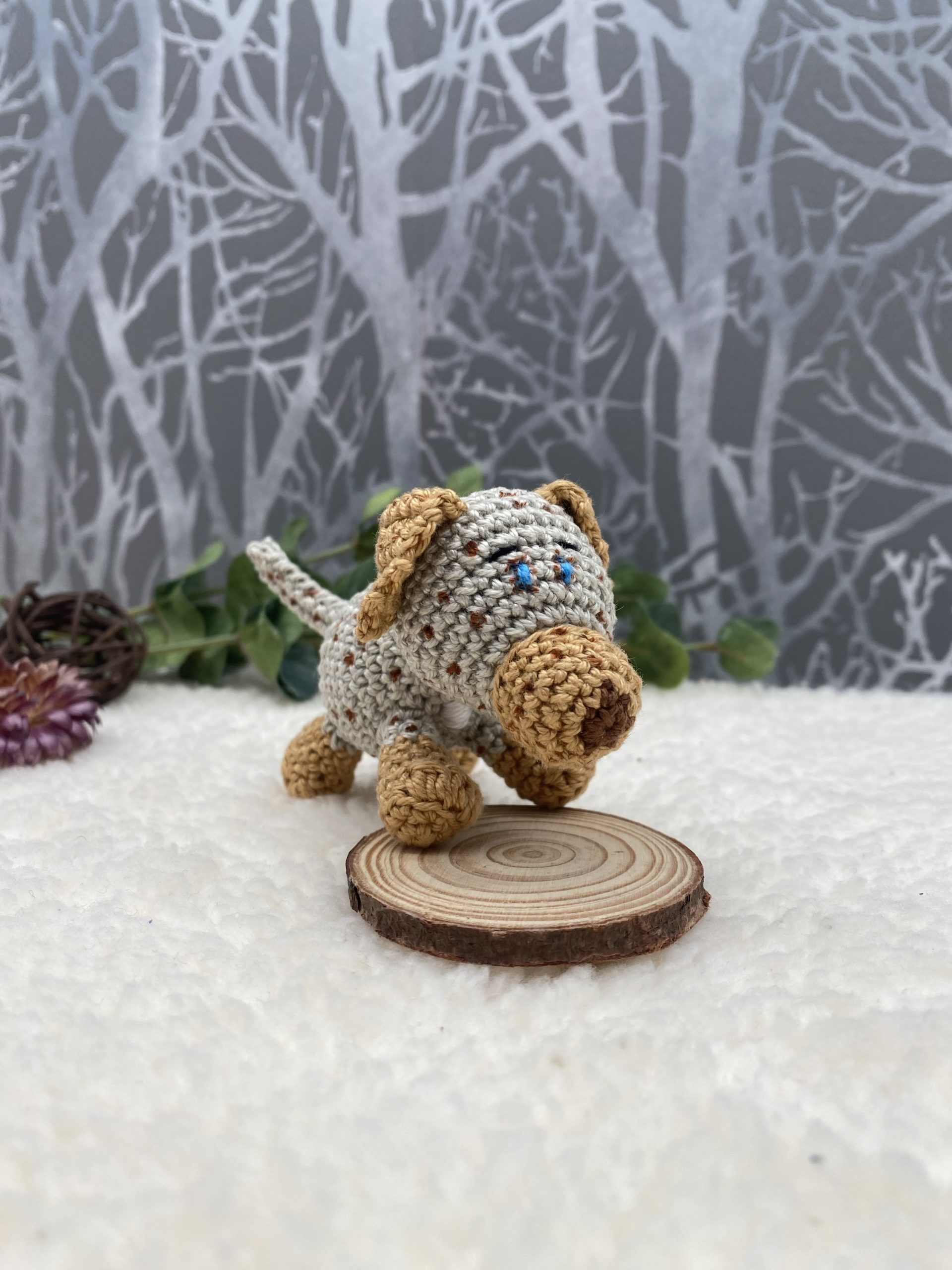 Bei der Erstellung eures individuellen Häkelhundes kann ich verschiedene Merkmale eures echten Hundes berücksichtigen, z.B. Fellfarbe, Abzeichen oder sonstige besondere Merkmale.