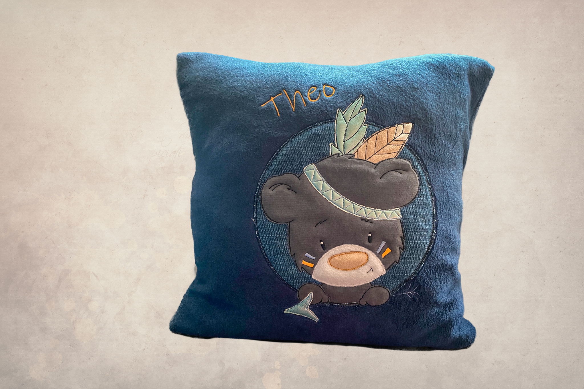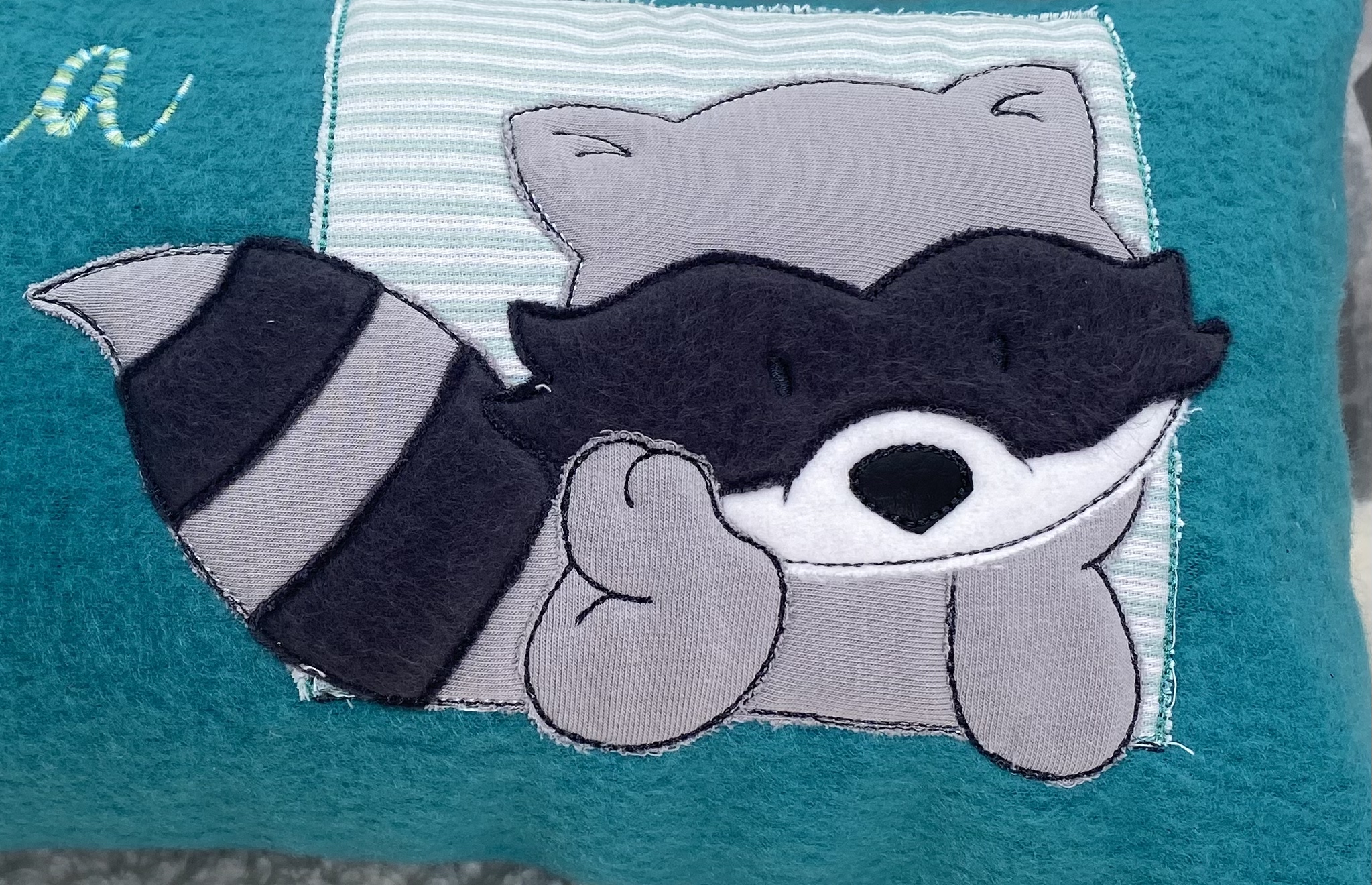 Nach einem Stickdesign von Stickwolke fertige ich individuelle Kissen mit einem aufgestickten Motiv.