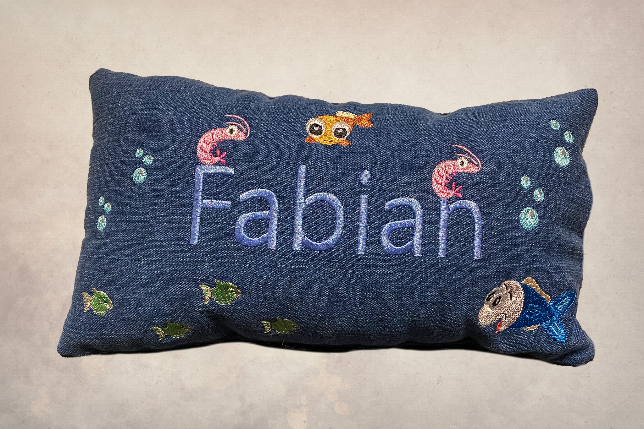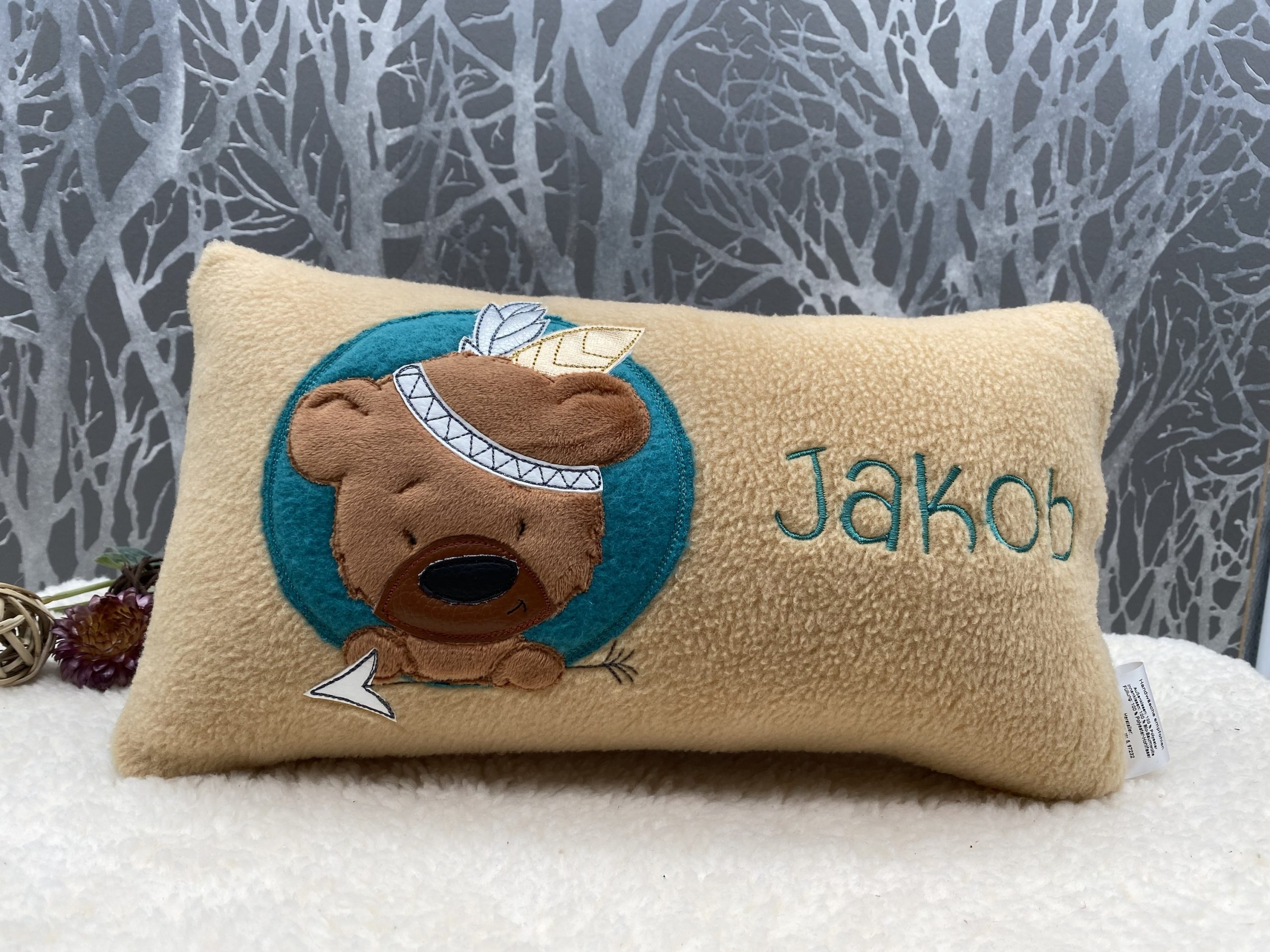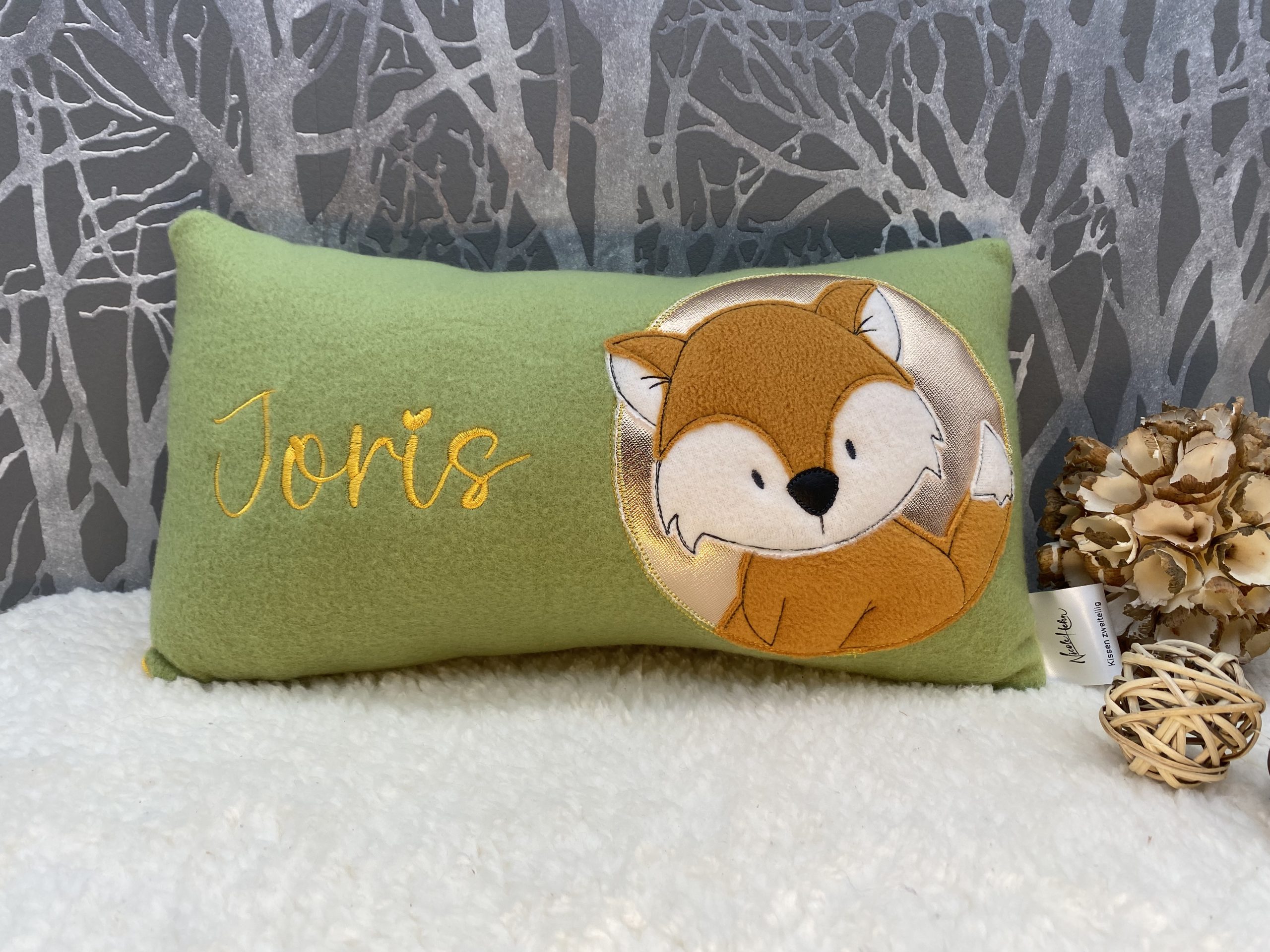 Es handelt sich um ein Kissen mit den Maßen 35×19 cm – ideal als Nackenkissen oder zur Dekoration geeignet.