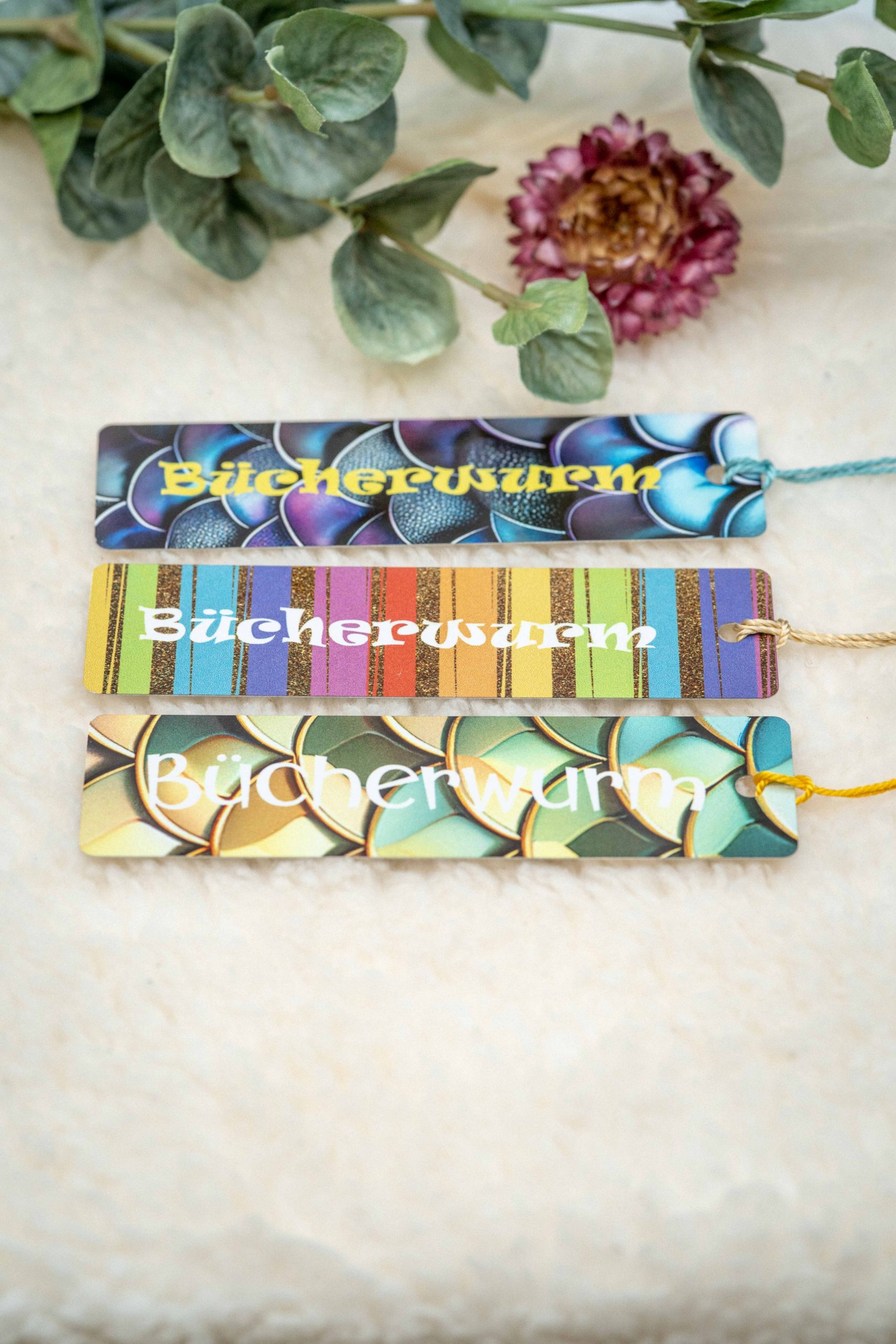 Lesezeichen aus Metall mit verschiedenen Motiven. Ihr könnt gerne eines der bestehenden Designs auswählen. Oder ihr nennt mir eure Farb- und Motivwünsche und ich gestalte für euch ein individuelles Lesezeichen.